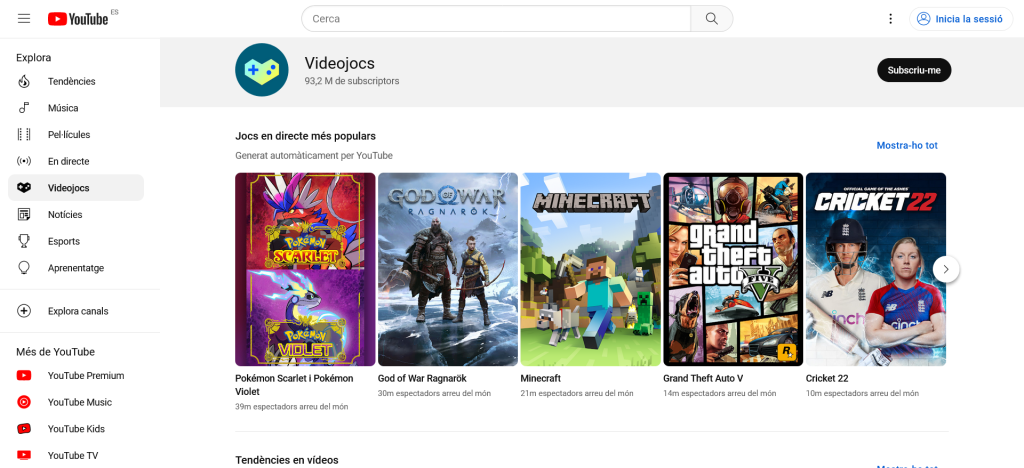 En la pestaña dedicada a Gaming de Youtube, sí hay un sistema de categorías muy parecido al de Twitch para recomendar las retransmisiones en directo como lo hace la cometencia. De hecho, hasta tiene un aspecto similar.