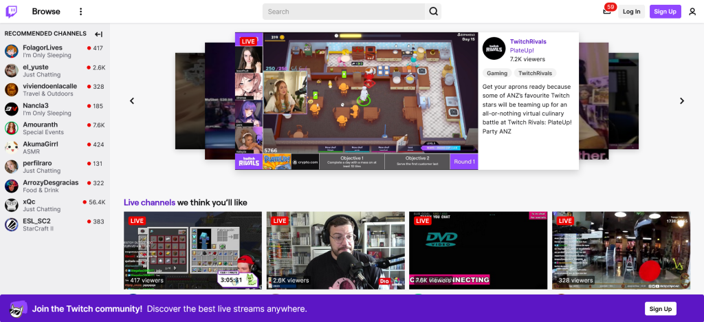 ¿Cuál es el problema? Que por defecto siempre te mostrará antes los canales más grandes y con mayor número de espectadores. Las condiciones óptimas para descubrir a nuevos creadores de contenido pequeños es que ellos estén emitiendo en una categoría con poca competencia y que justo a ti te apetezca cotillear esa misma categoría.