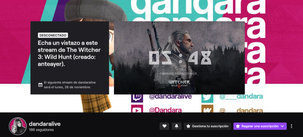Por último, si he optado por Twitch en lugar de YouTube, ha sido porque quería descubrir una nueva herramienta. Antes de emitir mis propios directos rara vez visitaba la plataforma morada. Empezar a hacer streams fue la excusa perfecta para aprender desde dentro el funcionamiento de Twitch.
